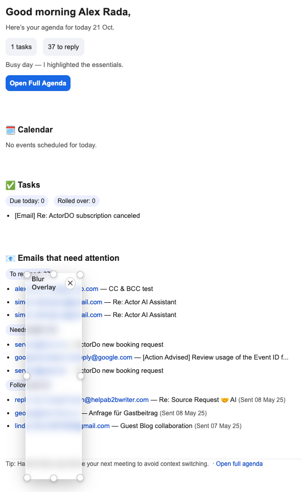Our Daily Agenda feature helps you stay organized by providing you with an overview on a daily basis.