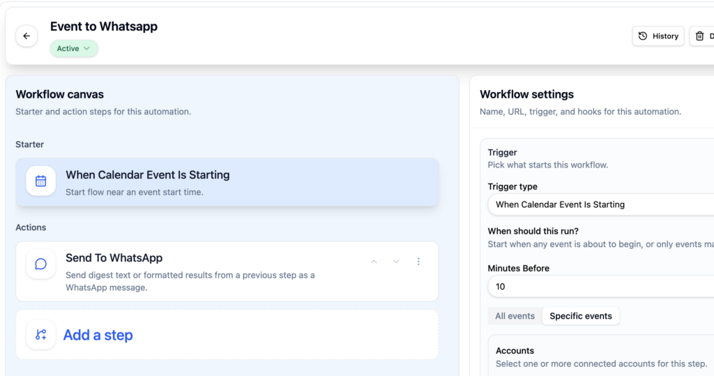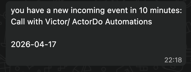 The simplest 2 step automation you can create with Actor Studio: receive calendar notifications on Whatsapp.