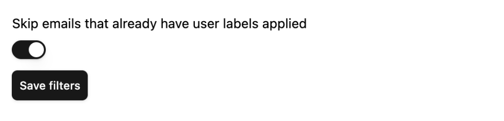 When enabled, if email already has a label applied (using built-in Gmail rules or manual), it will be skipped from processing.