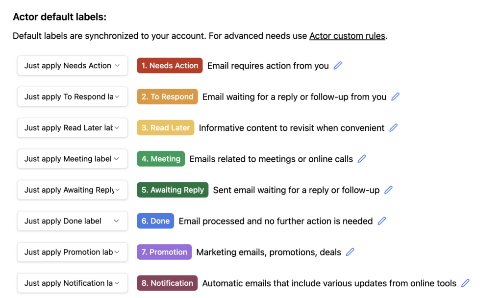 - AI Training – Teach Actor how to label/categorize your emails