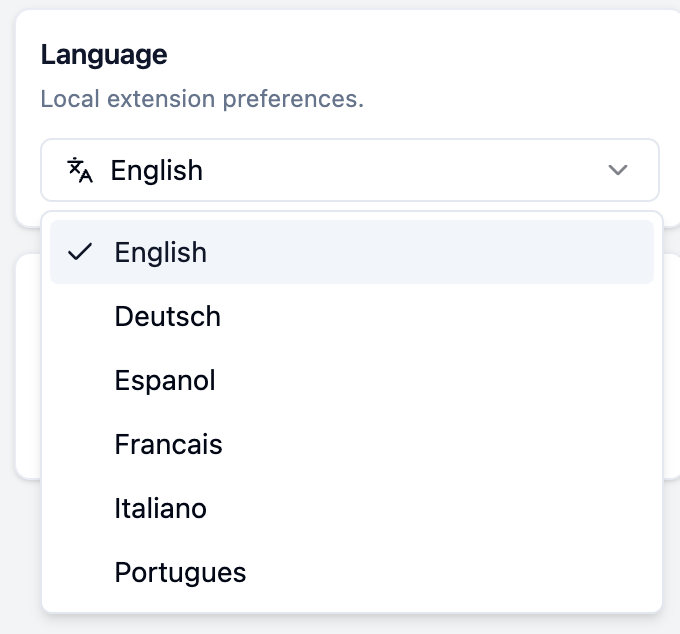 Extension Settings (languages)