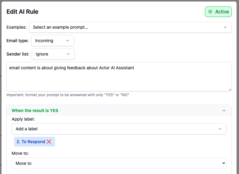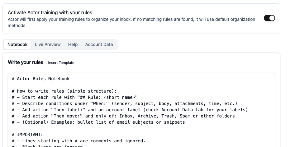 - AI training – teach Actor how to label your emails