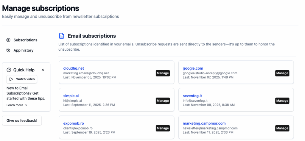 Use Email Subscriptions App directly with your Outlook account.
